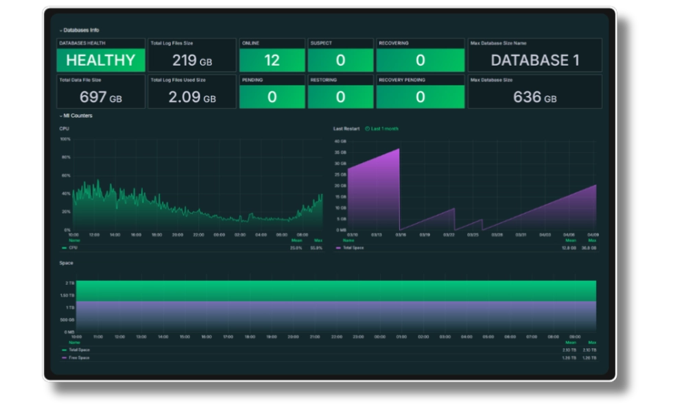 Asegura el rendimiento, controla los costes y mejora la seguridad de tu base de datos con una supervisión avanzada y alertas proactivas.