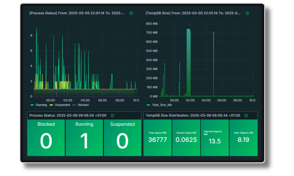 Detecta cuellos de botella, analiza bloqueos y evita tiempos de inactividad con monitorización en tiempo real.